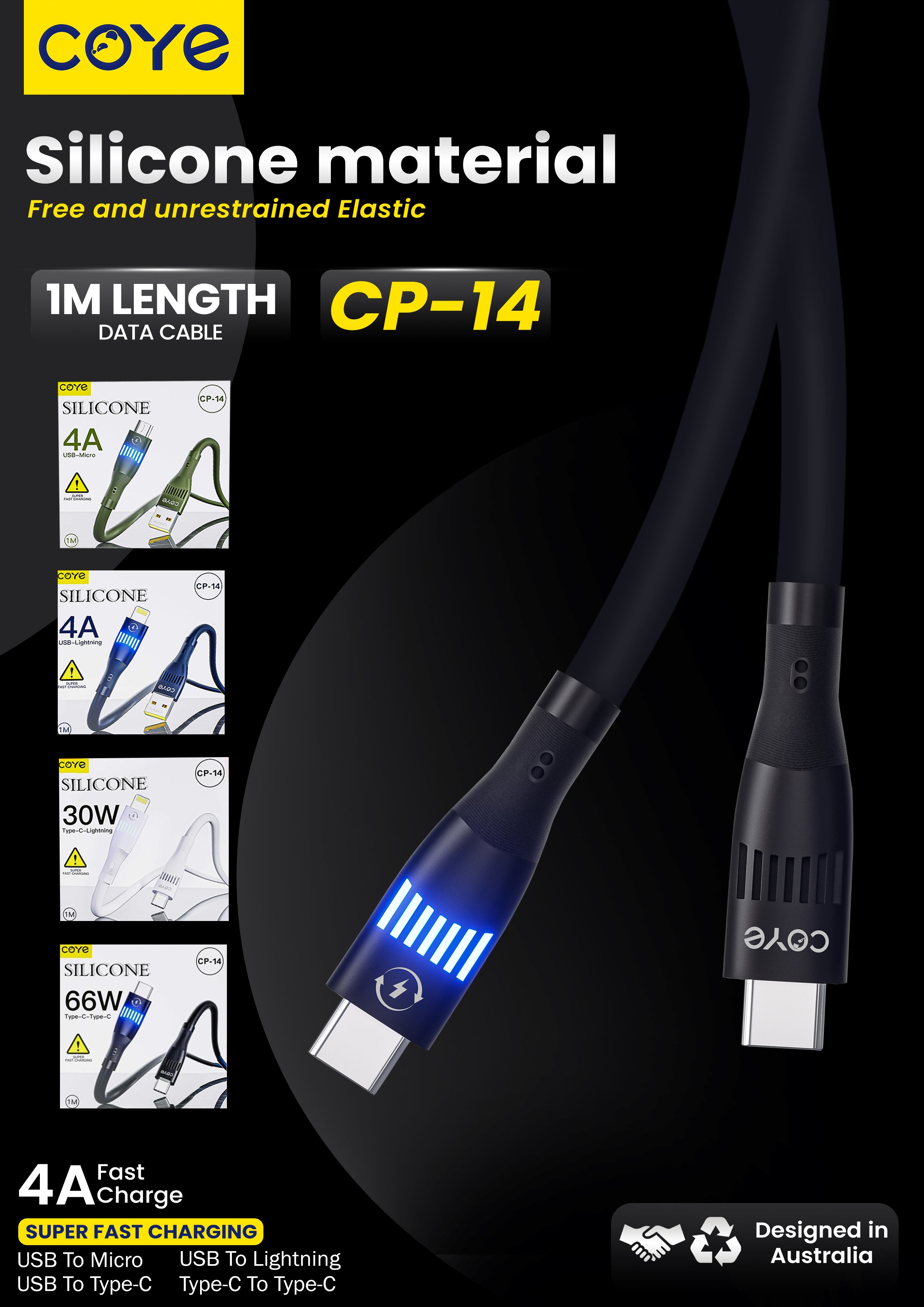 COYE 1m USB C to USB C Cable – 66W PD Fast Charging & Data Sync, LED Indicator, Flame-Retardant, Pull-Resistant, Tangle-Free, Extreme Temperature -50°C to 250°C